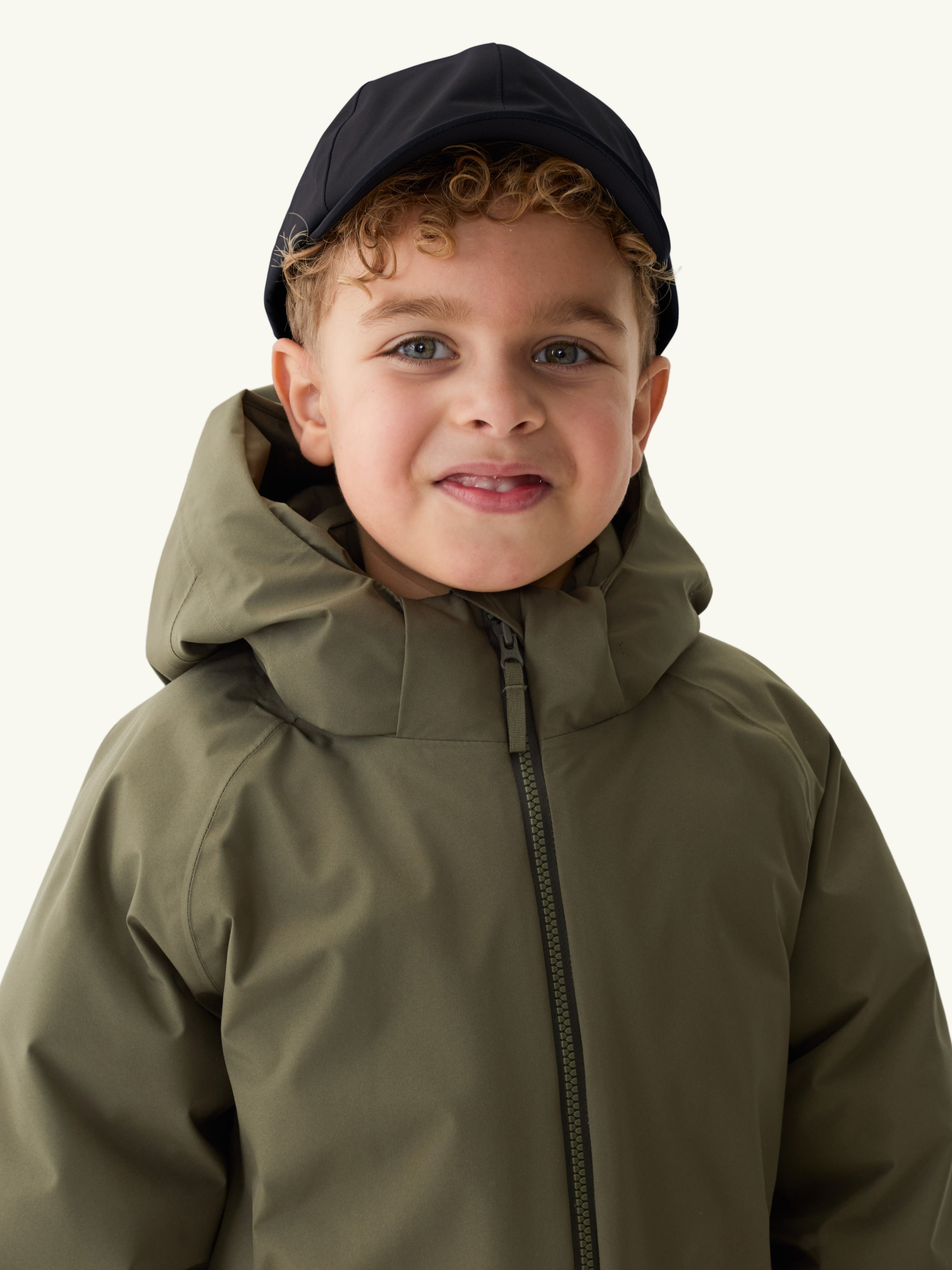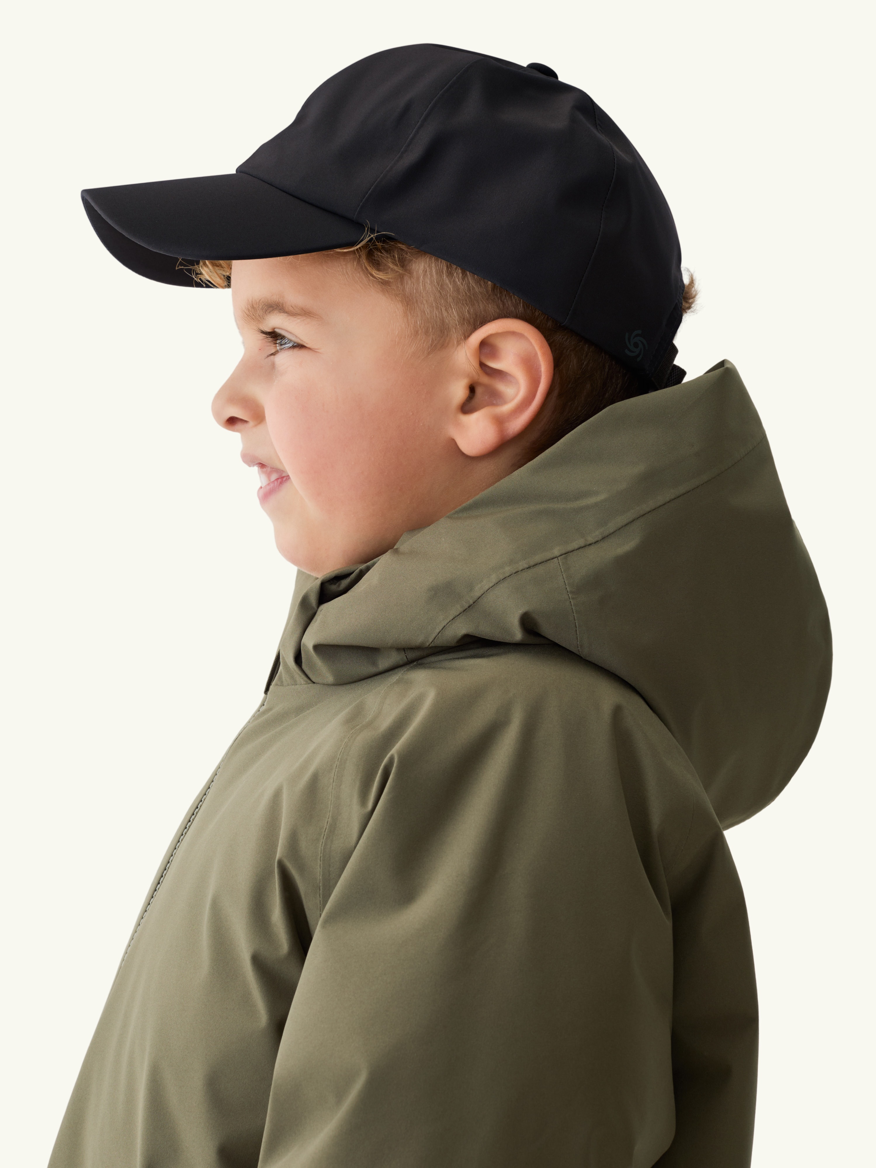 This is a waterproof ball cap for kids. It has a cool-dry sweat band on the inside, which is perfect for active days in spring and summer.