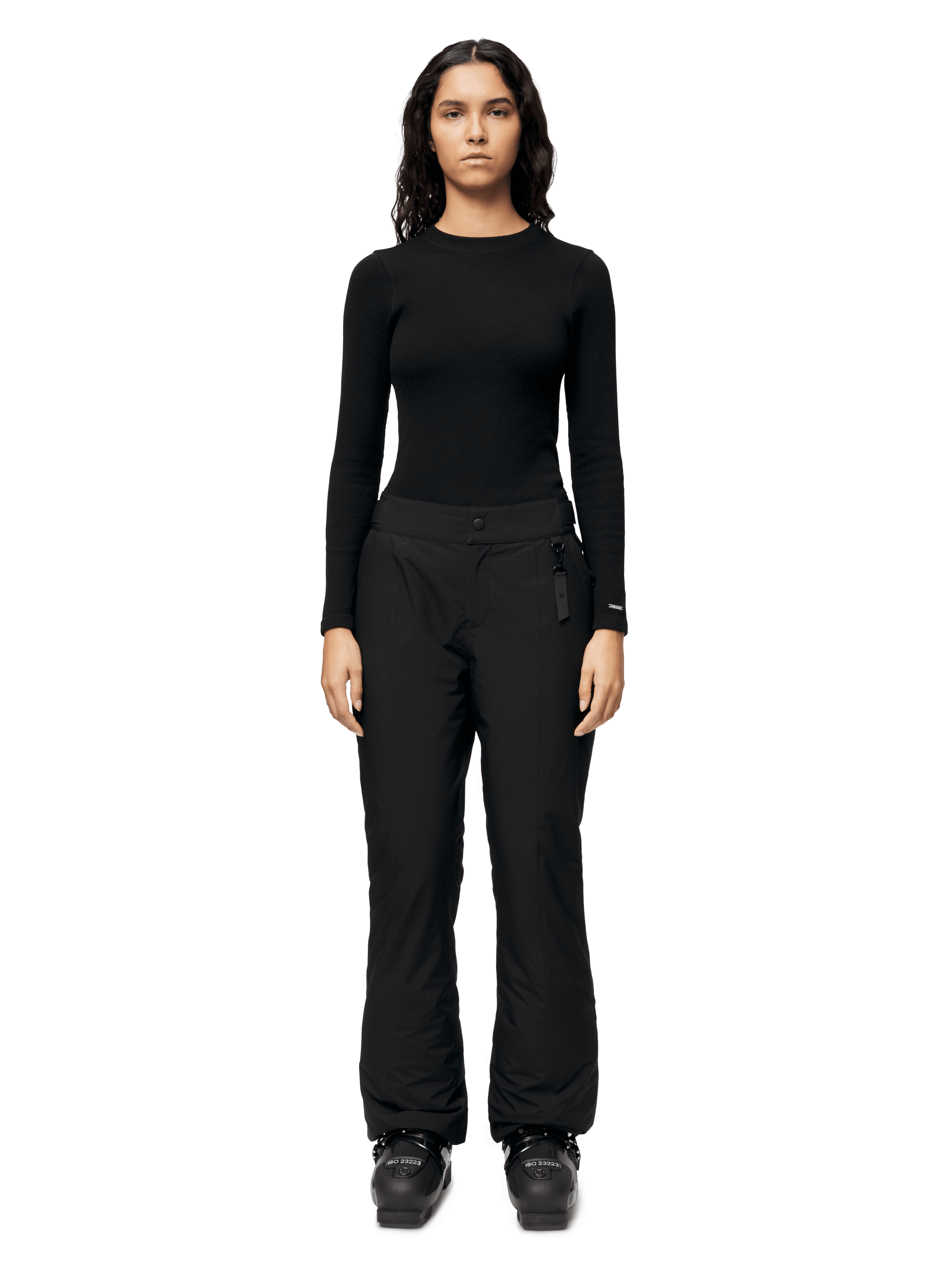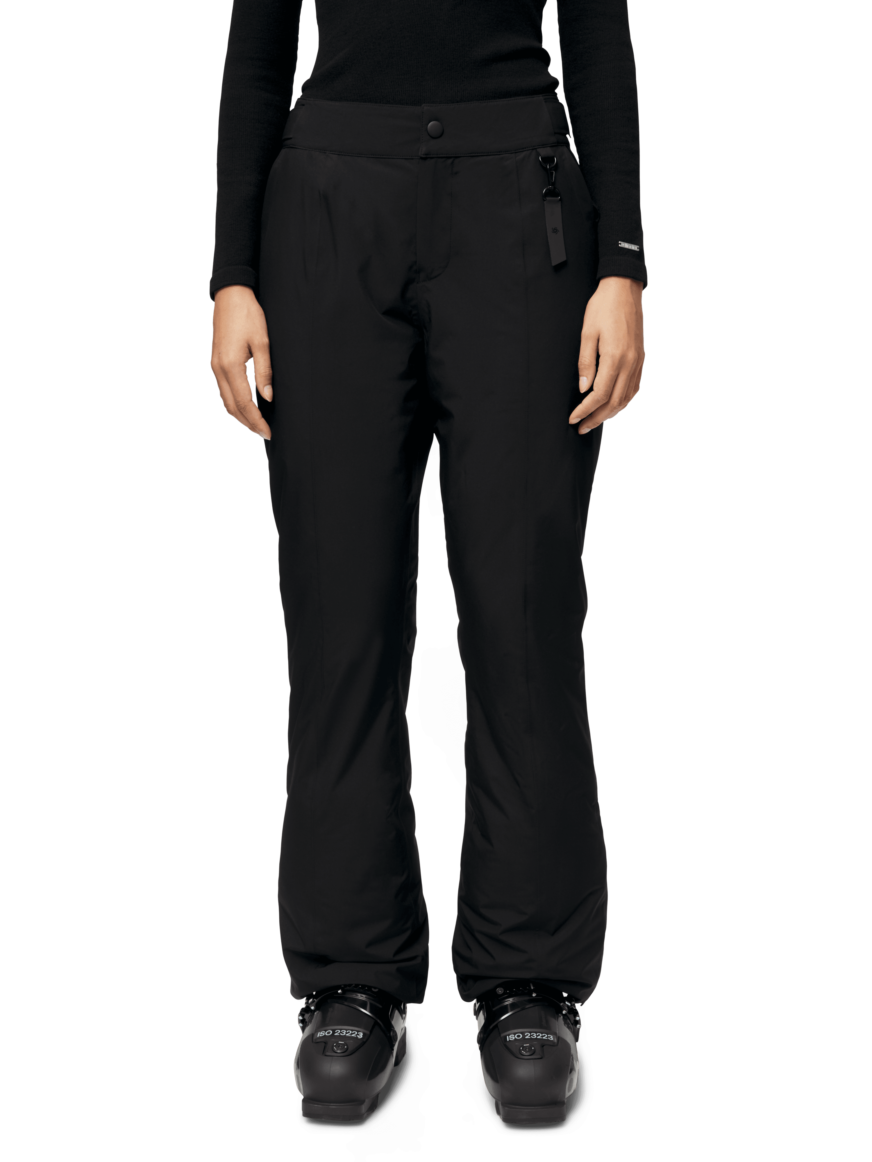 This women’s ski pant has a feminine silhouette and advanced functionalities. It boasts a 20,000 mm waterproof rating and 20,000 gm/24hrs breathability, offering top-tier protection and comfort. The pants are also crafted using Sorona® Aura insulation, a material designed to provide warmth while being lightweight and durable. The Juvass insulated kick flare pant features a concealed thigh pocket for ski cards, a fleece-lined back waistband for added comfort, and leg openings with snow gaiters.