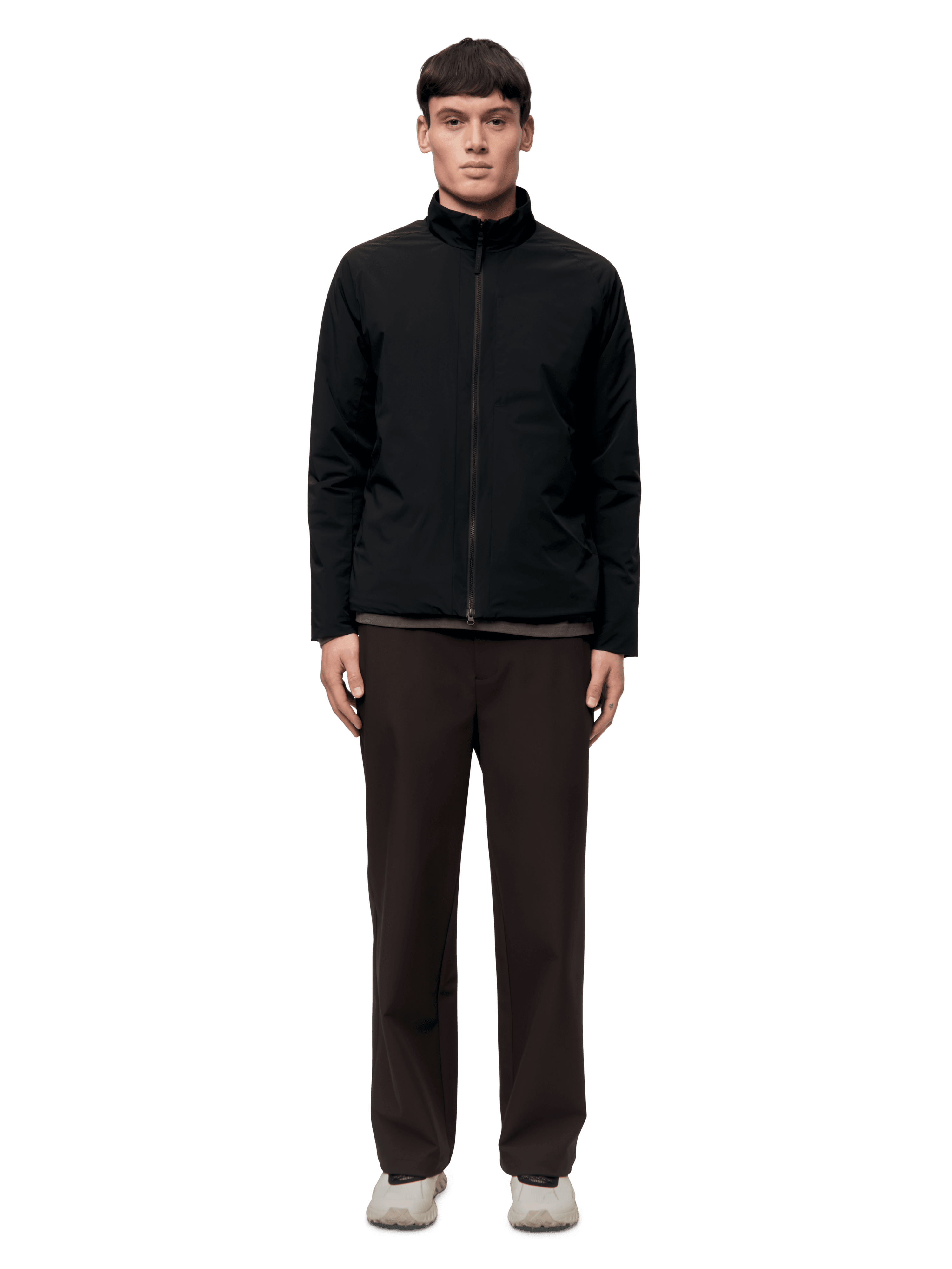 If he’s constantly on the move, choose lightweight layers and waterproof silhouettes that pack easily and adapt to shifting weather. A technical midlayer under a clean, insulated coat keeps him comfortable from commute to coffee stop — no matter the forecast.