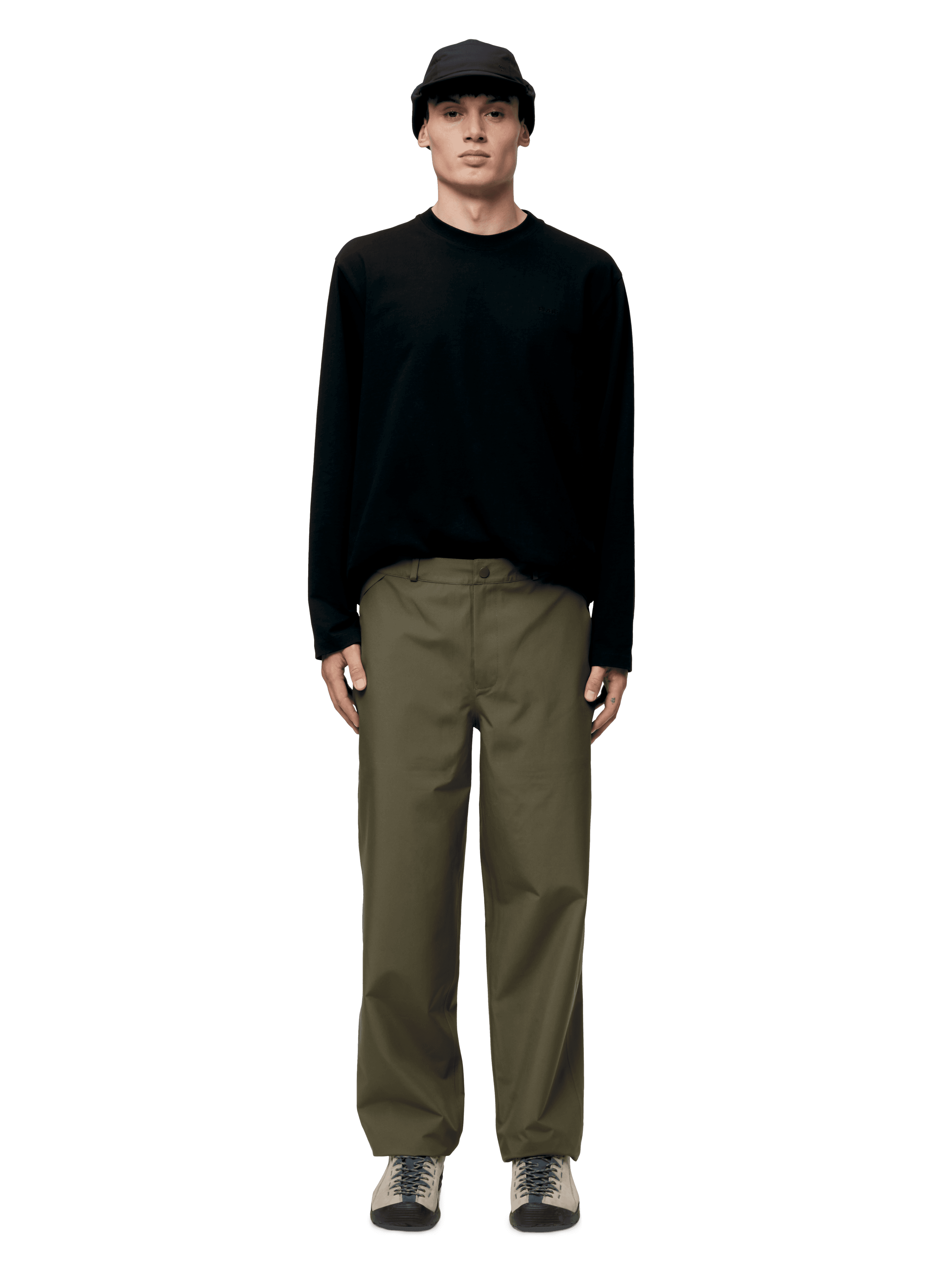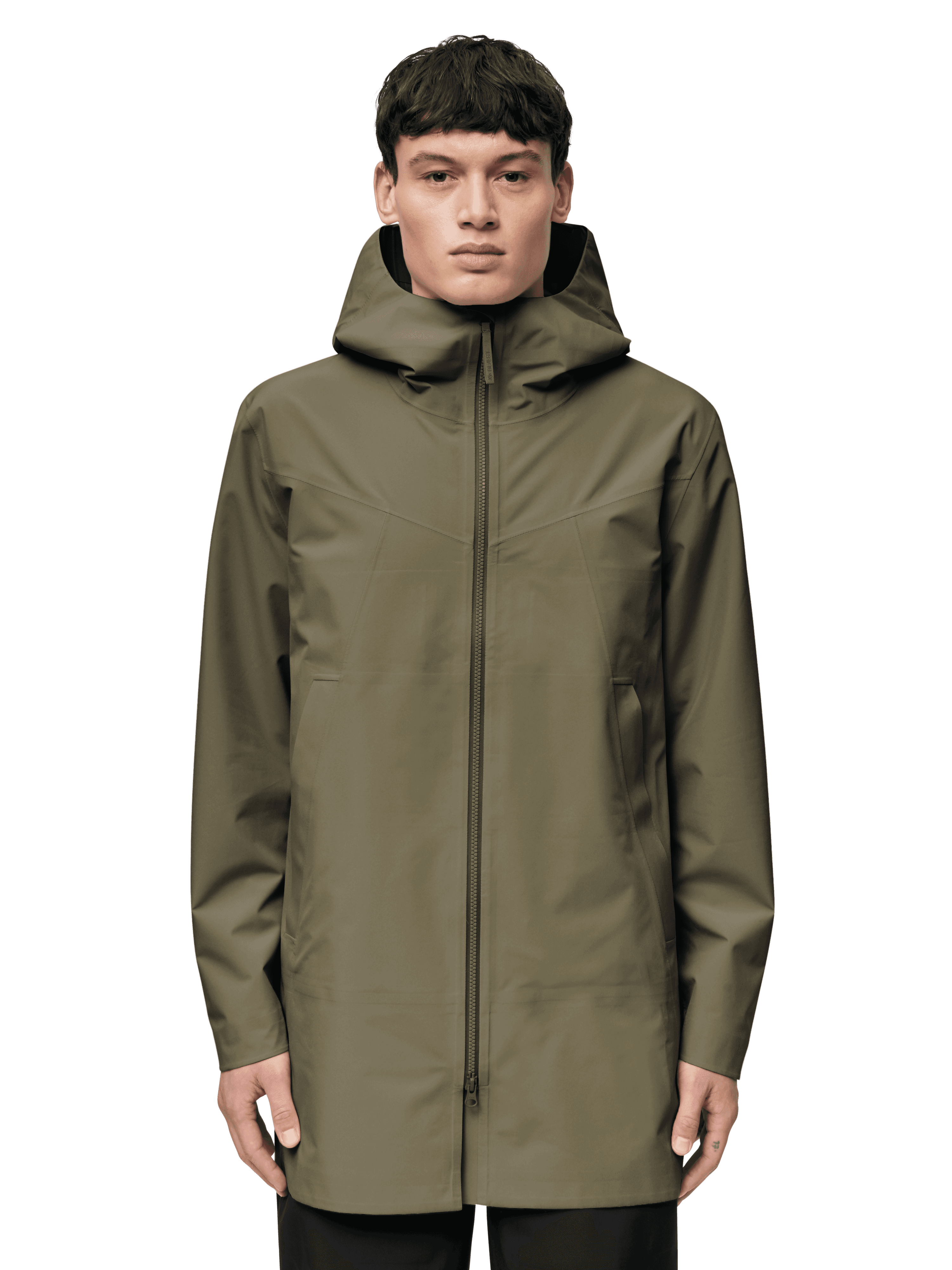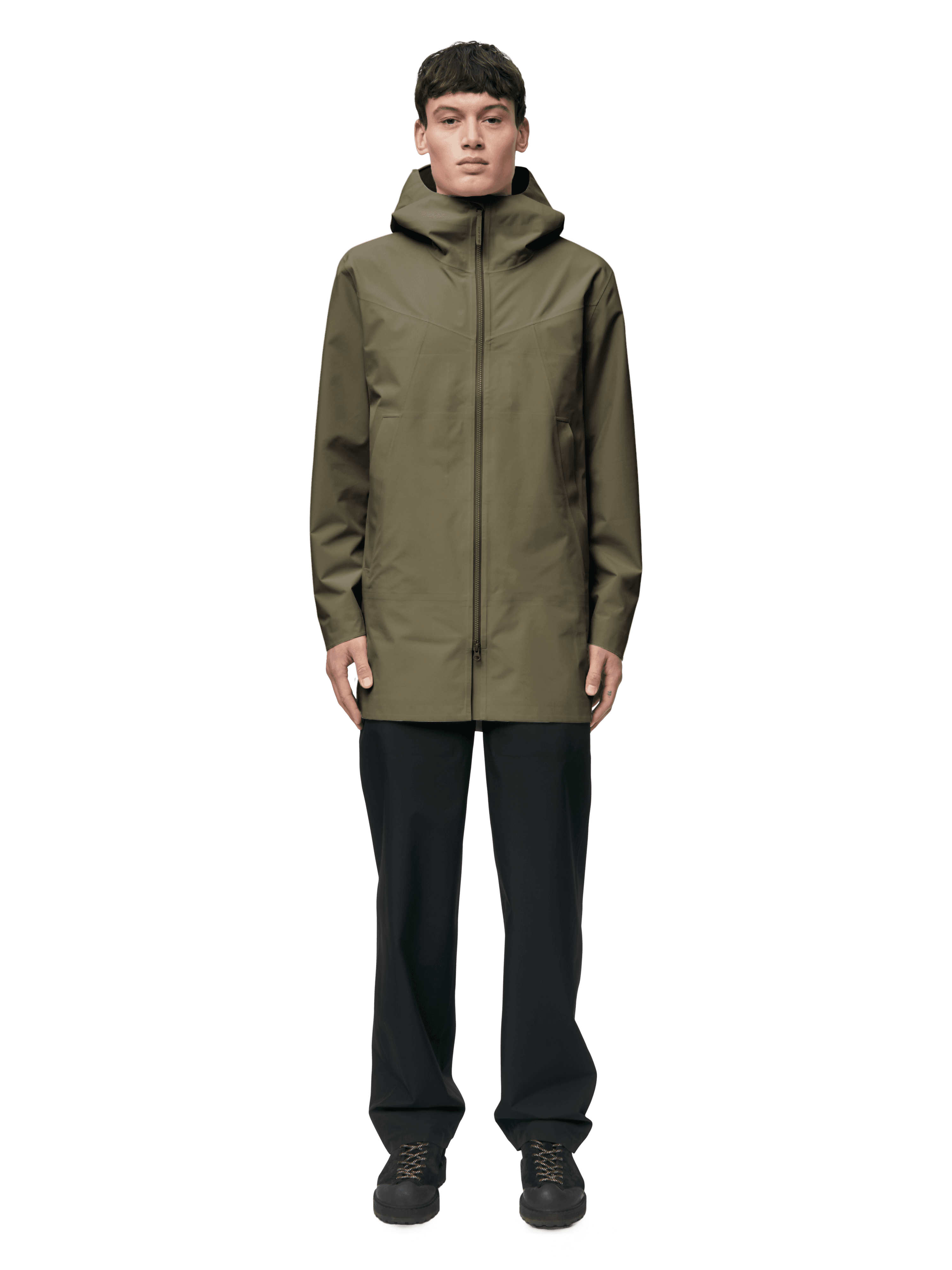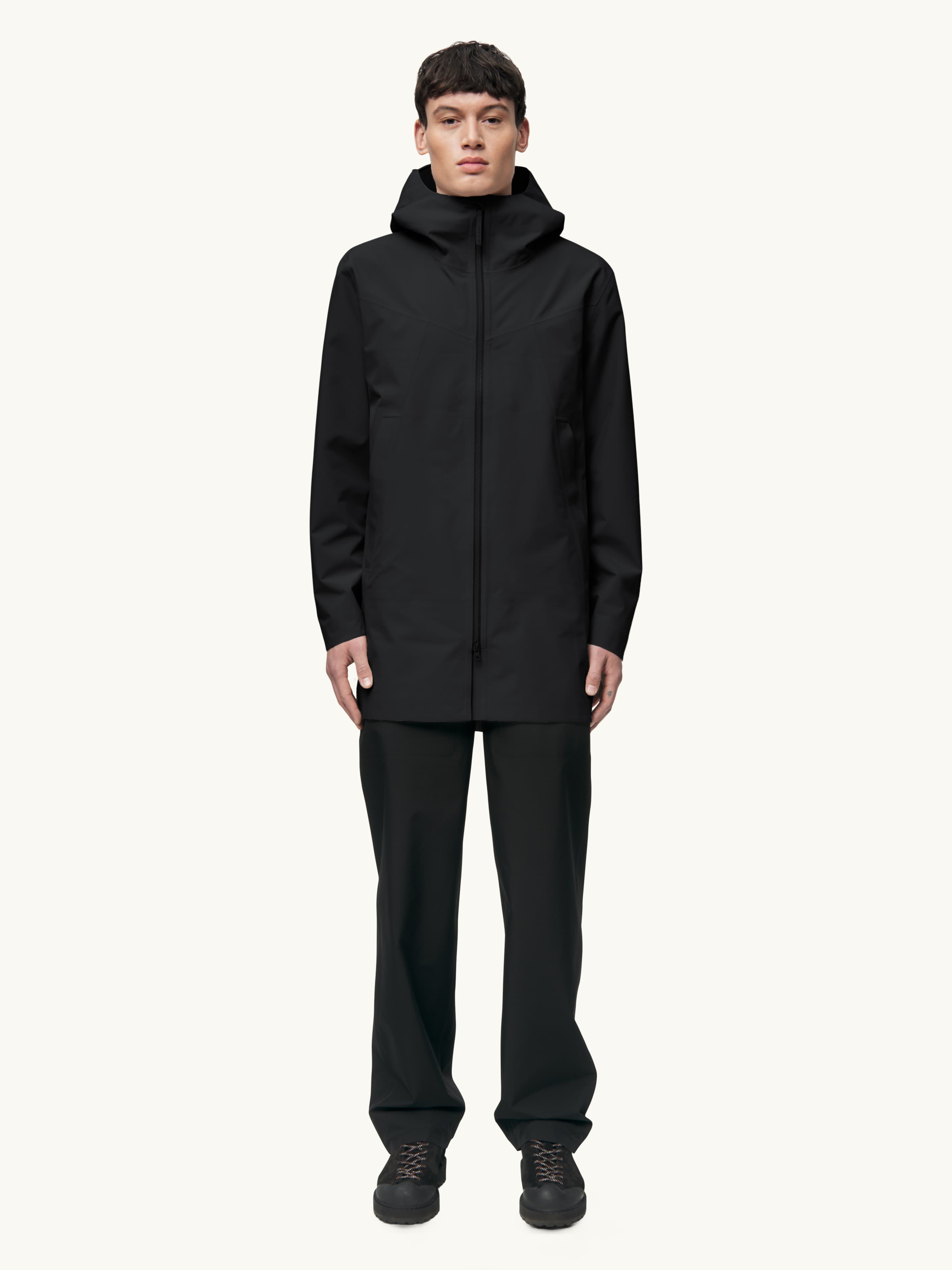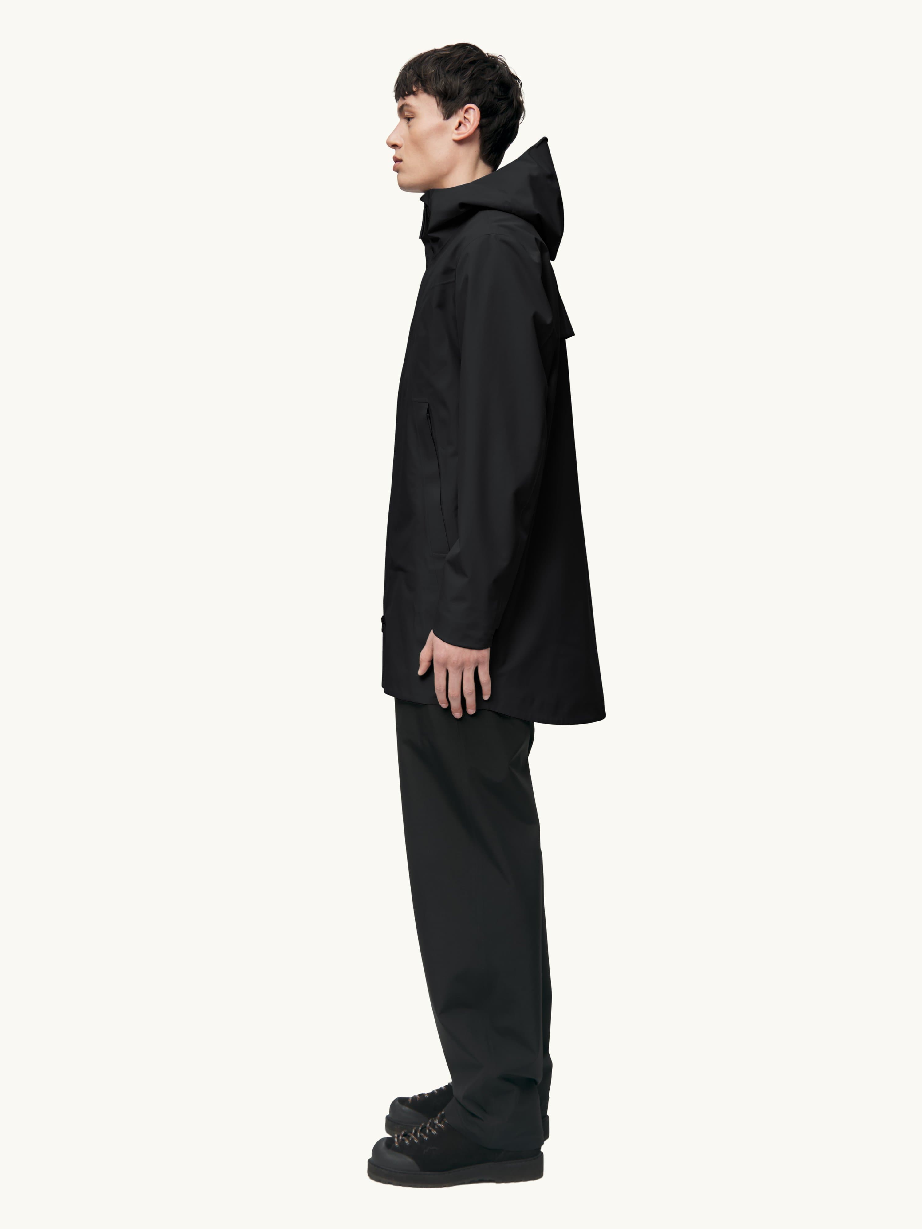 Our waterproof pieces use soft, durable fabrics with high water columns, taped seams and designs engineered for movement. These garments perform in real weather while staying minimal in appearance — technical on the inside, understated on the outside.