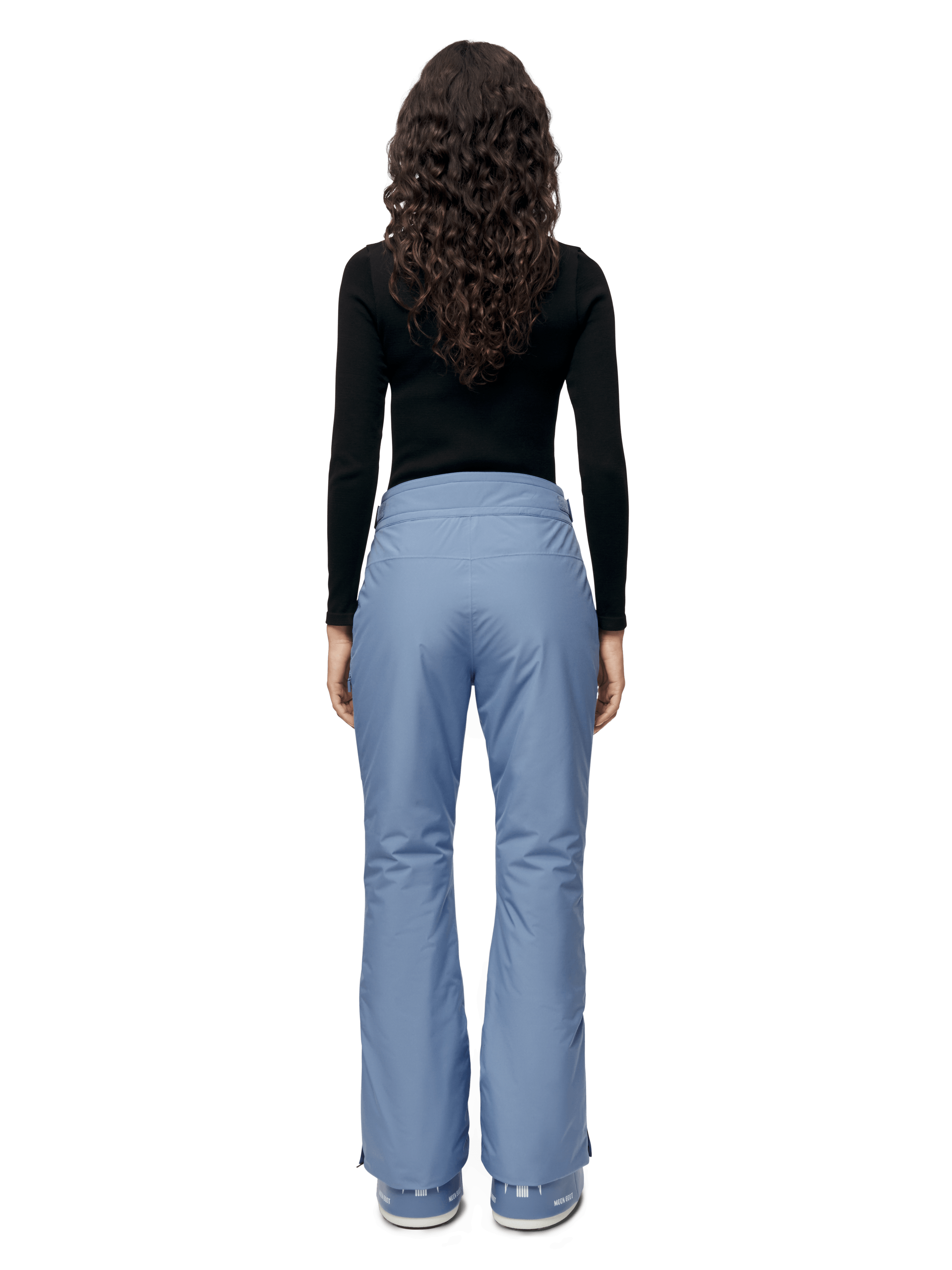 This women’s ski pant has a feminine silhouette and advanced functionalities. It boasts a 20,000 mm waterproof rating and 20,000 gm/24hrs breathability, offering top-tier protection and comfort. The pants are also crafted using Sorona® Aura insulation, a material designed to provide warmth while being lightweight and durable. The Juvass insulated kick flare pant features a concealed thigh pocket for ski cards, a fleece-lined back waistband for added comfort, and leg openings with snow gaiters.