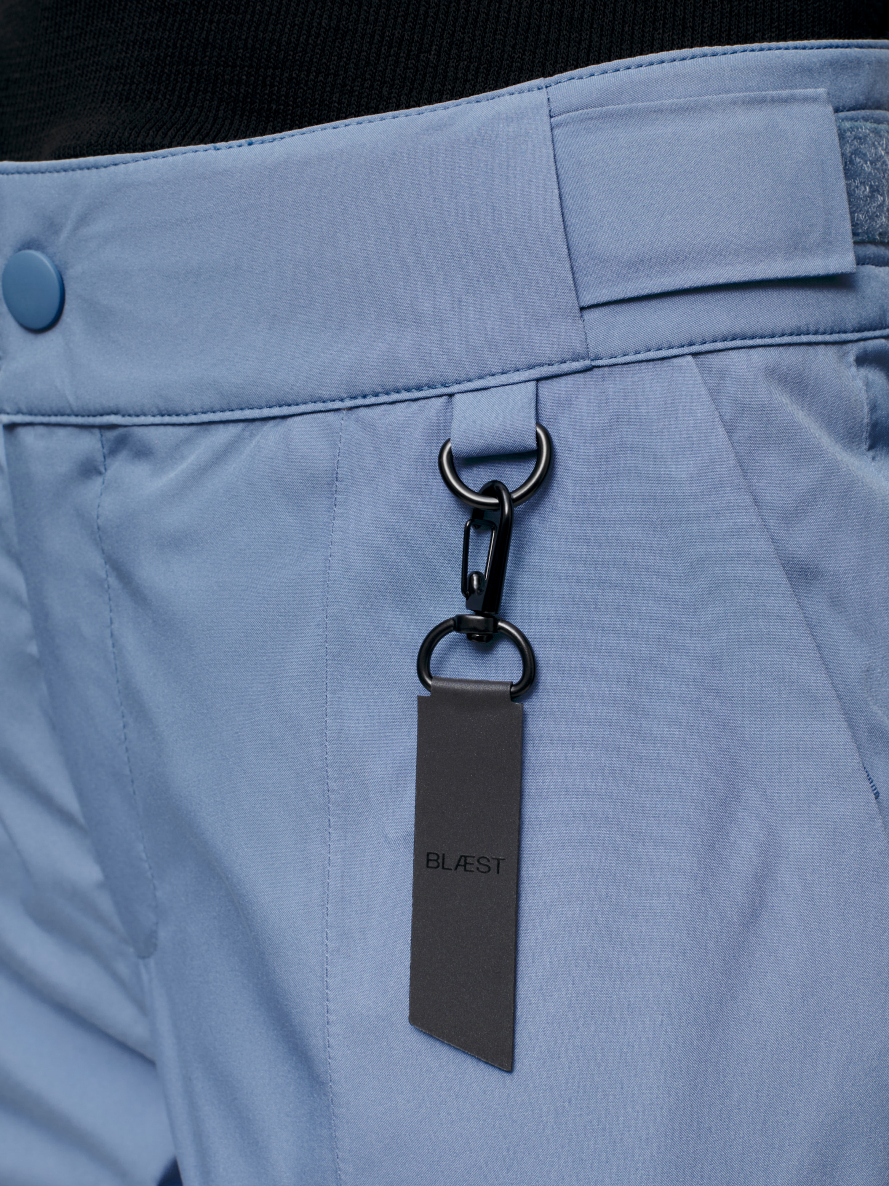 - Snap button closure with internal hook and eye.