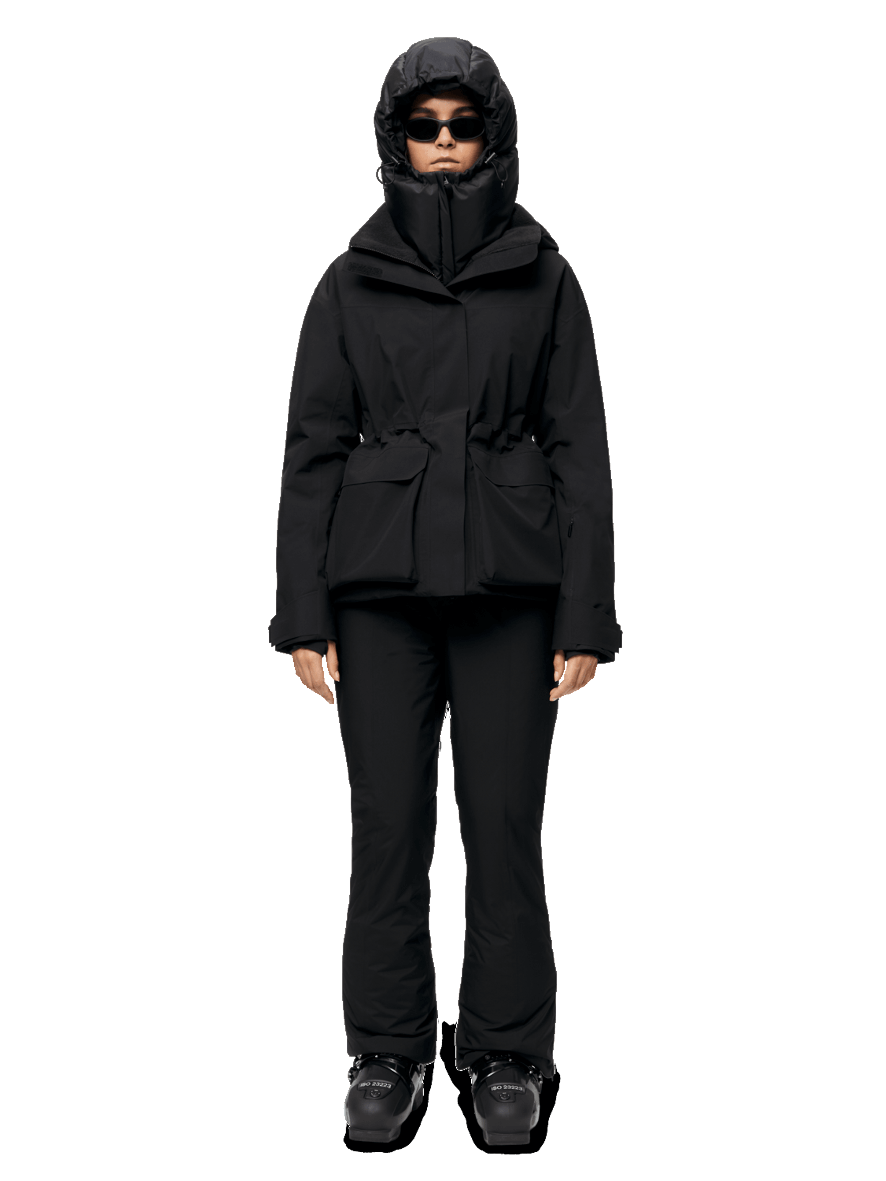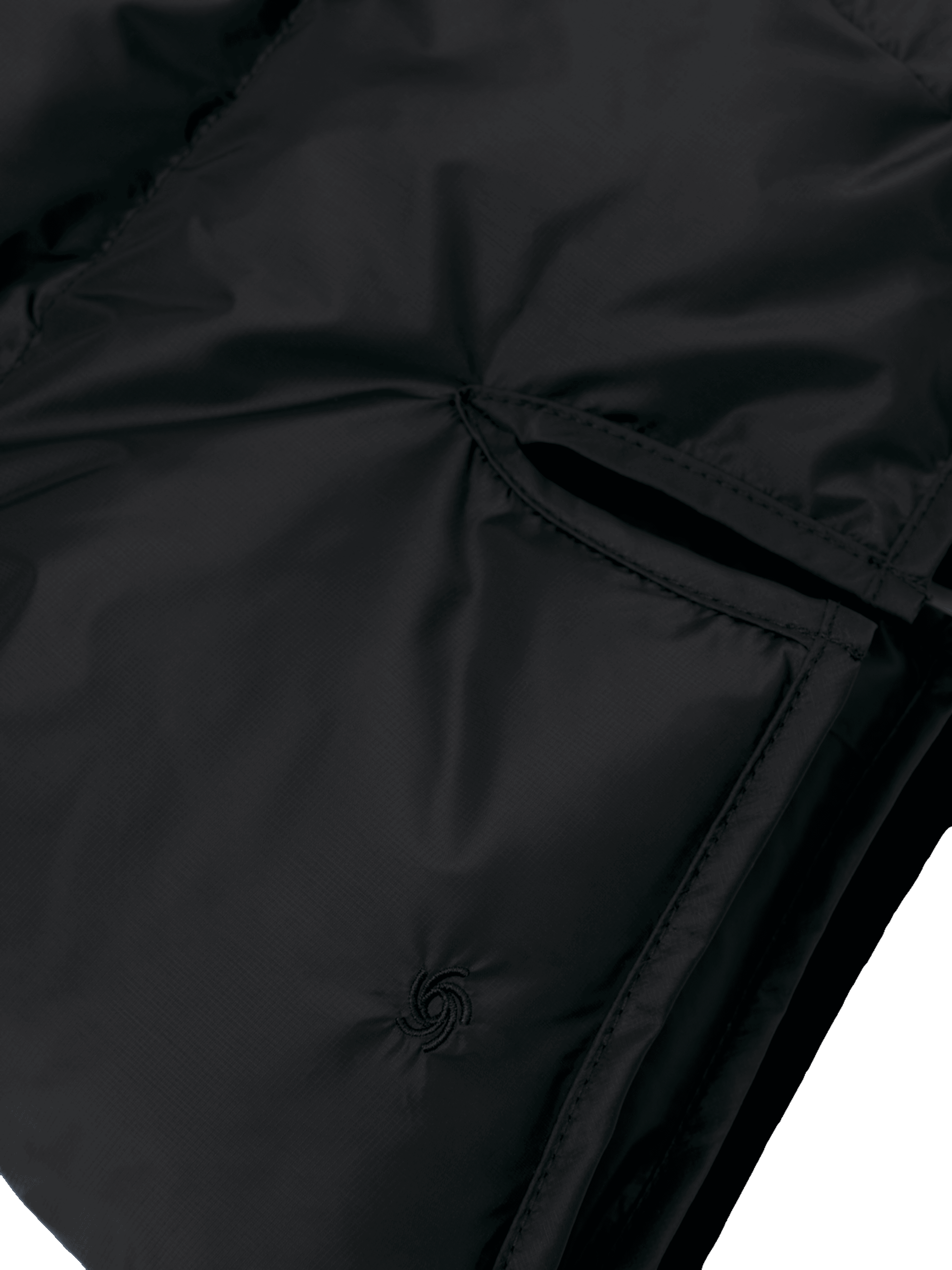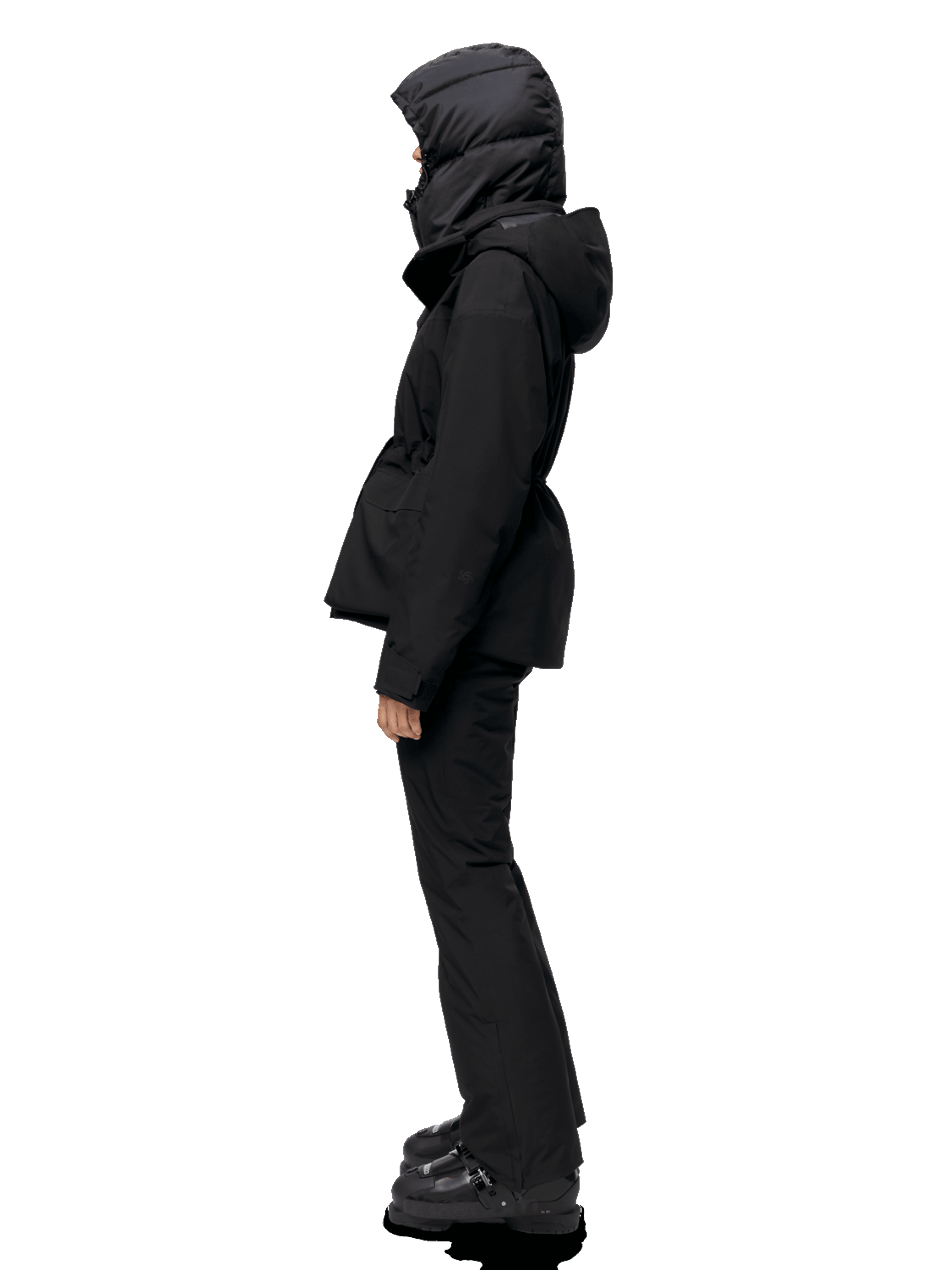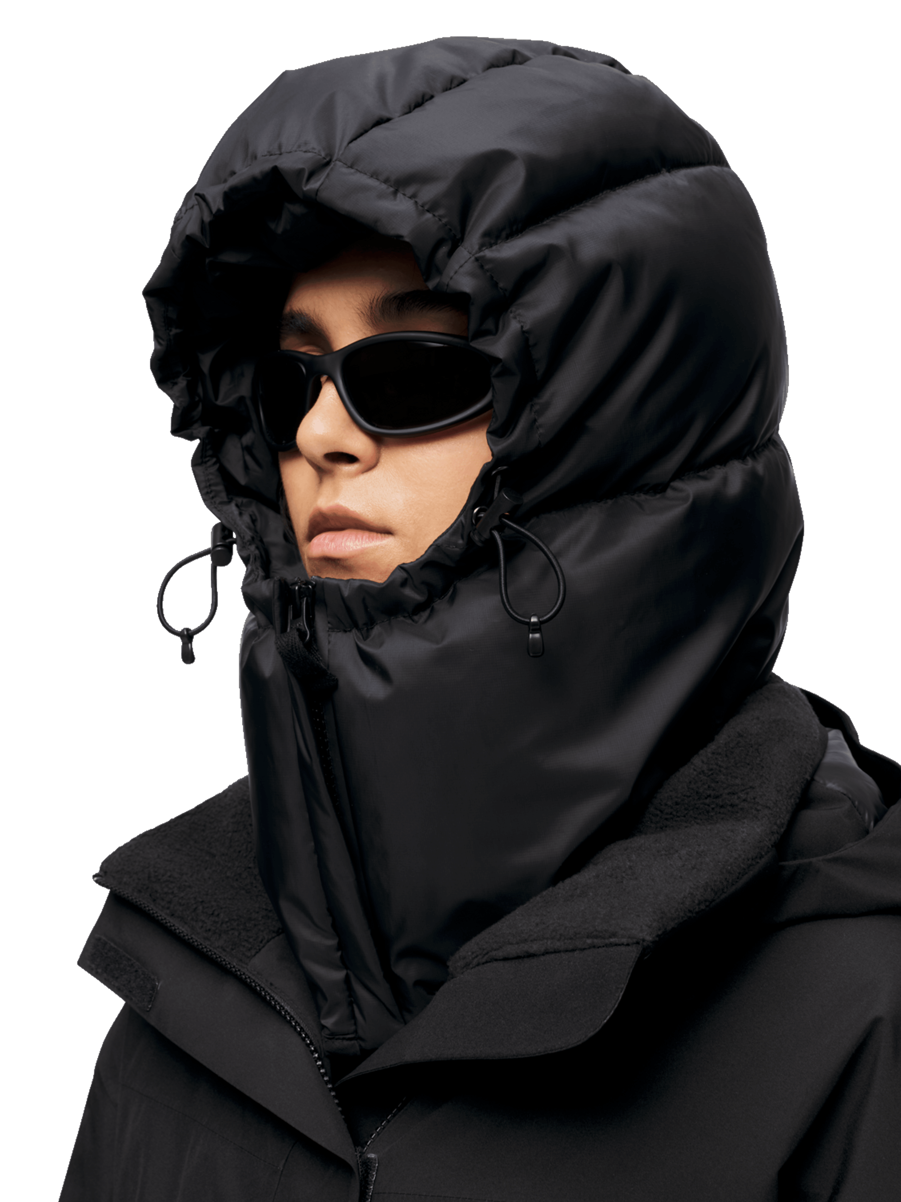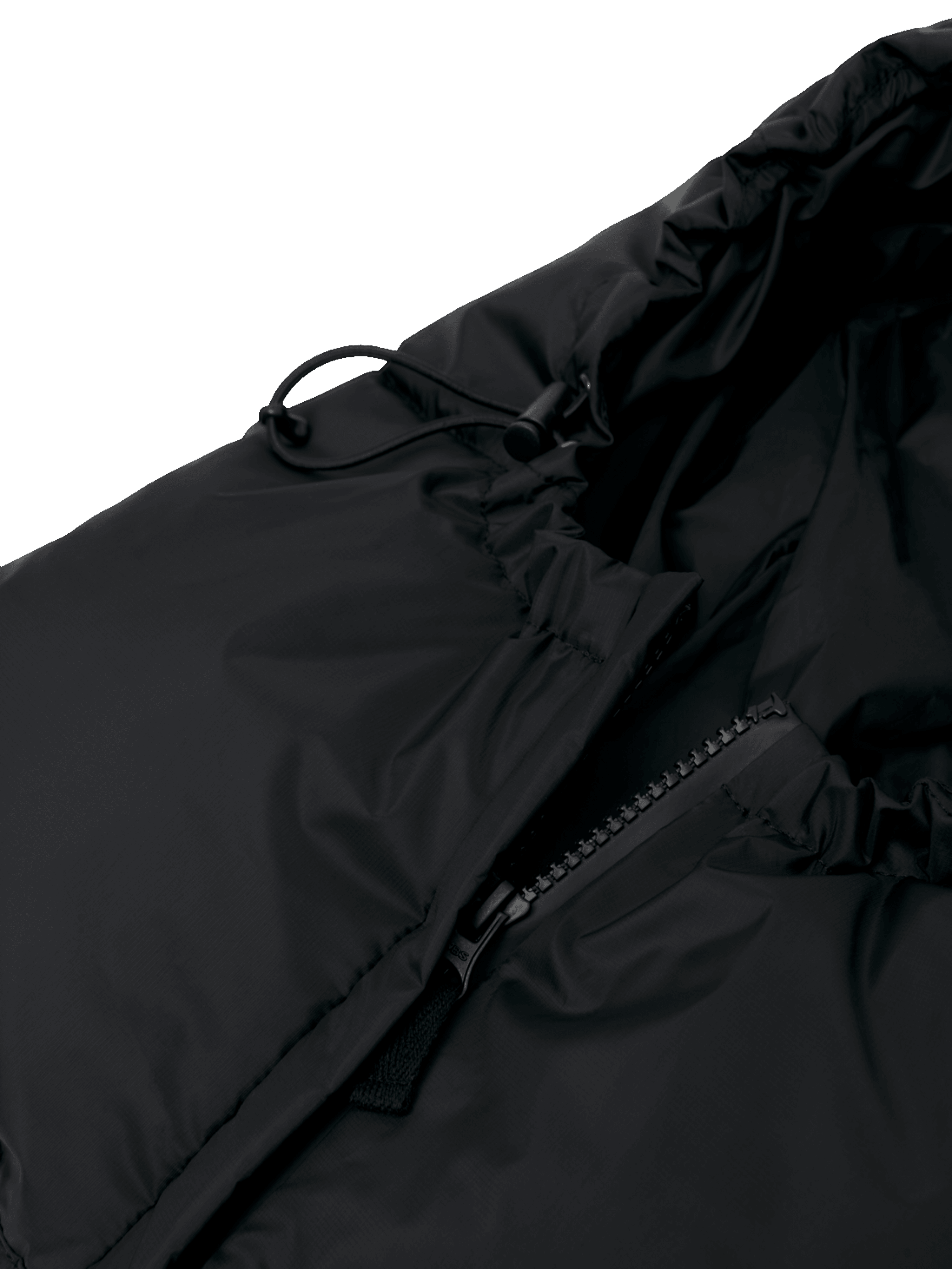 - Drawstring adjustment around hood opening.