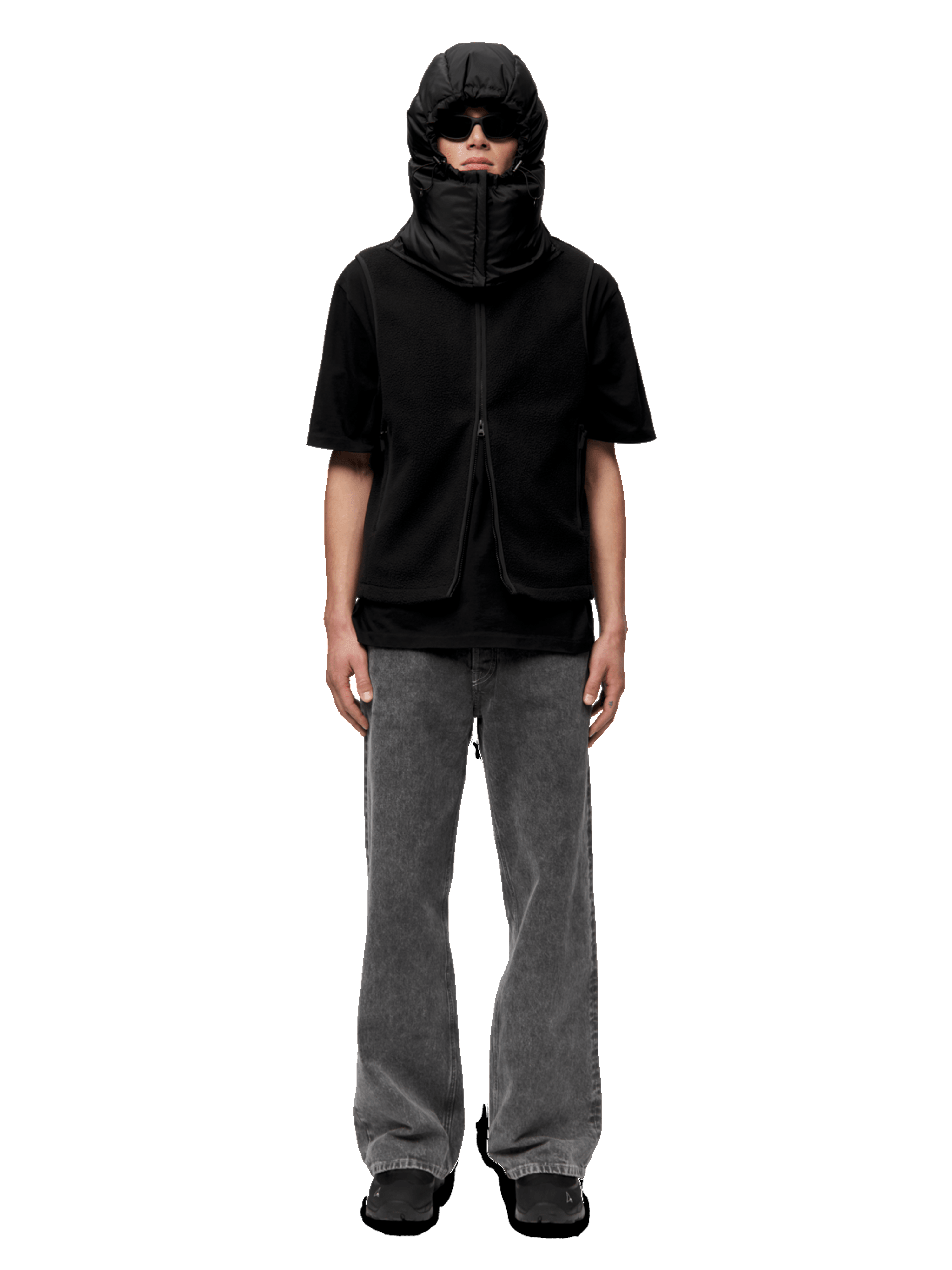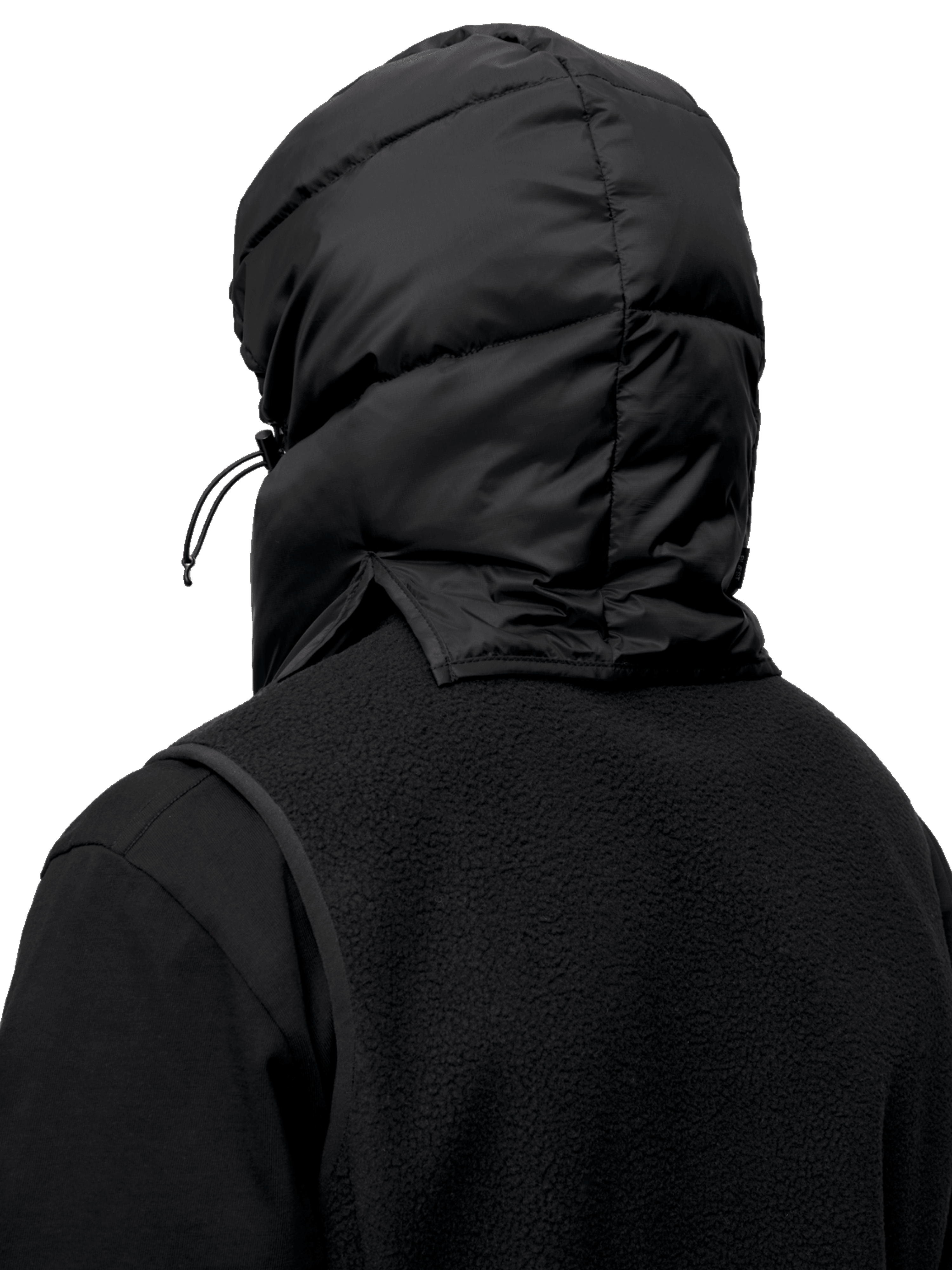 - Drawstring adjustment around hood opening.