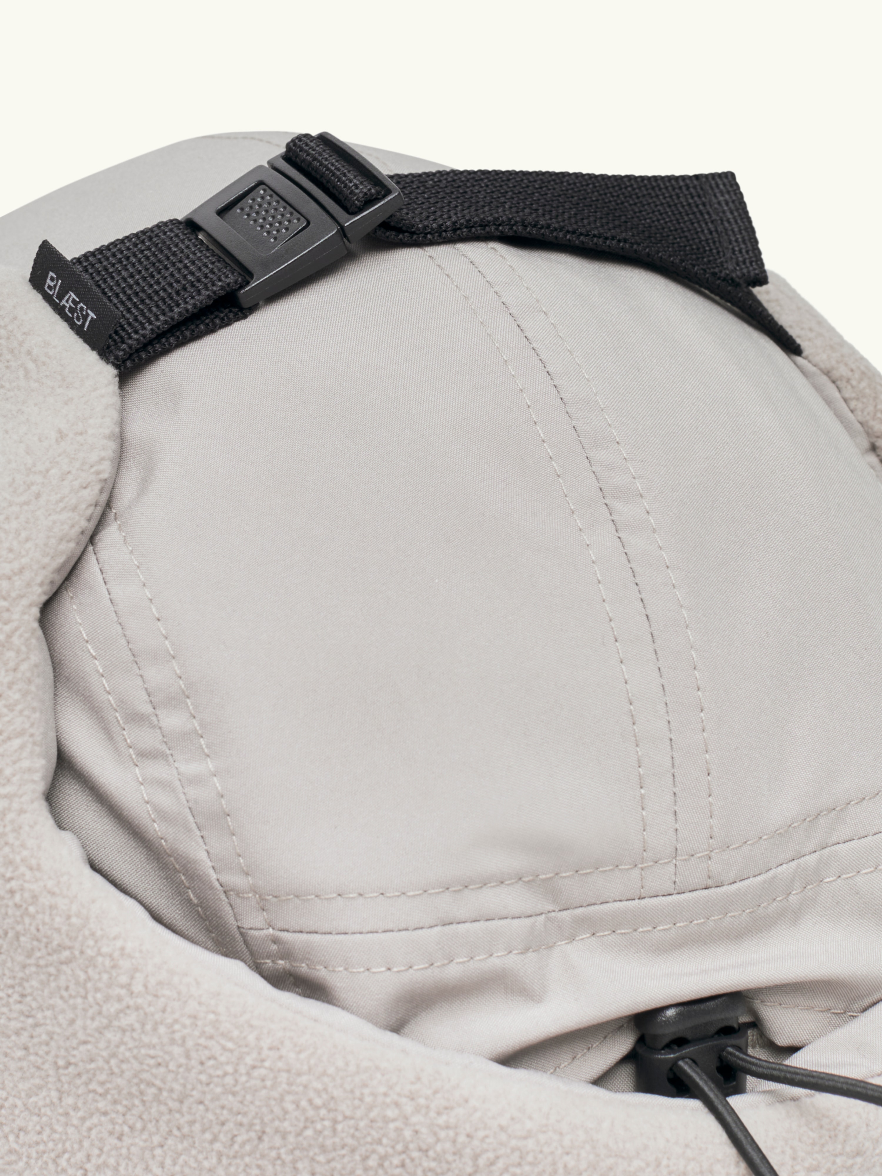 - Ear cover flaps with fleece lining and buckle adjustment.